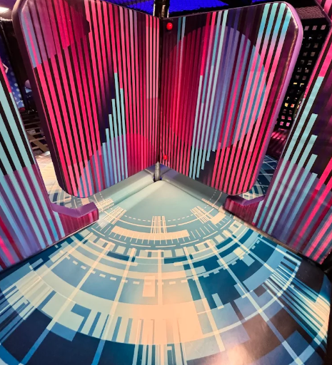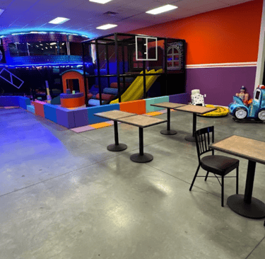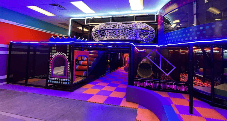 This sleek, thoughtfully designed play space features colorful padded flooring, soft climbing structures, and safe open zones that encourage kids to explore and move freely in a secure, environment.