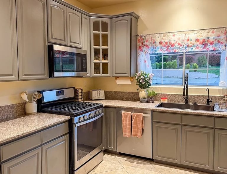 Modern Upgrades: Enjoy a contemporary kitchen equipped with a gunmetal farmhouse sink, new garbage disposal, high-end water softener, water heater, microwave, and washer/dryer.