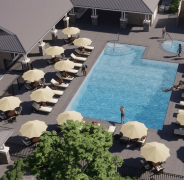 A luxurious clubhouse with a lounge, fireplace, and entertainment area