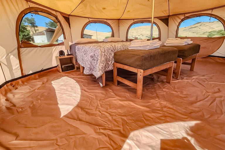 Furnished Glamping Tents: Experience the outdoors without sacrificing comfort.