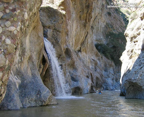 South Piru Creek flows south out of Pyramid Lake, through Falls Gorge, and continues to Lake Piru in Ventura County. The most navigable kayaking stretch lies between Pyramid Dam and Frenchman’s Flat, then continues south through steep-walled canyons carved deep into the Angeles National Forest.