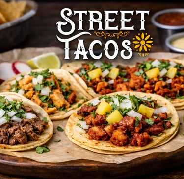 Street Tacos delivers classic hand-crafted tacos with bold flavors and fresh, vibrant toppings — great for casual dining or an evening out.