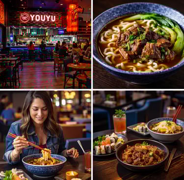 The menu centers around noodle bowls, rice dishes, and flavorful small plates, blending savory broths, rich sauces, and fresh ingredients with modern presentation. Whether you’re craving something warming and familiar or bold and adventurous, YOUYU delivers big flavor without pretense.